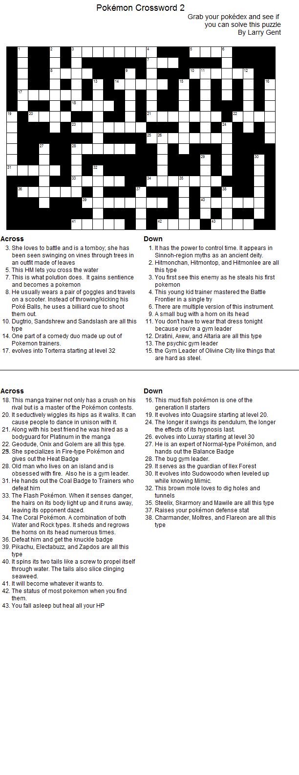 Welcome Back to Tuesday Test. This week it’s time for another Pokémon crossword. This time to Celebrate the release of Pokémon Black and White