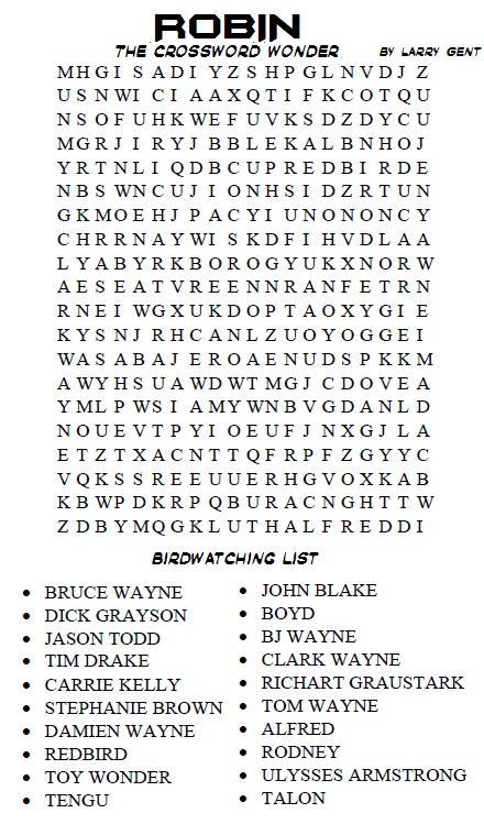 This crossword looks at anybody who had the name Robin, Red or otherwise, worn the costume or became the Bat’s sidekick. Enjoy and make sure to keep the Bat safe. Need Help? Have a comment? Message us at on twitter @42webs