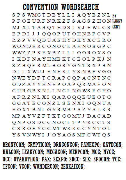 I love conventions. I love the people, I love the hustle, I dislike the bustle (odd – I know), but I love everything else about it. I love the panels, the dances and the costumes. So here we are. Hal-Con is approaching and I can’t wait to see what happens next. This week’s test is all about the various con across the globes.